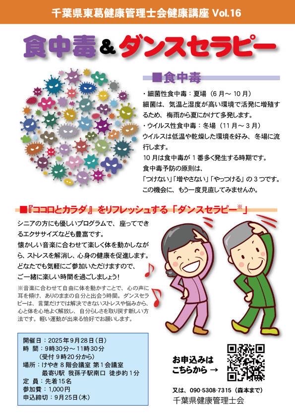千葉県東葛健康管理士会主催の健康講座が開催されます。