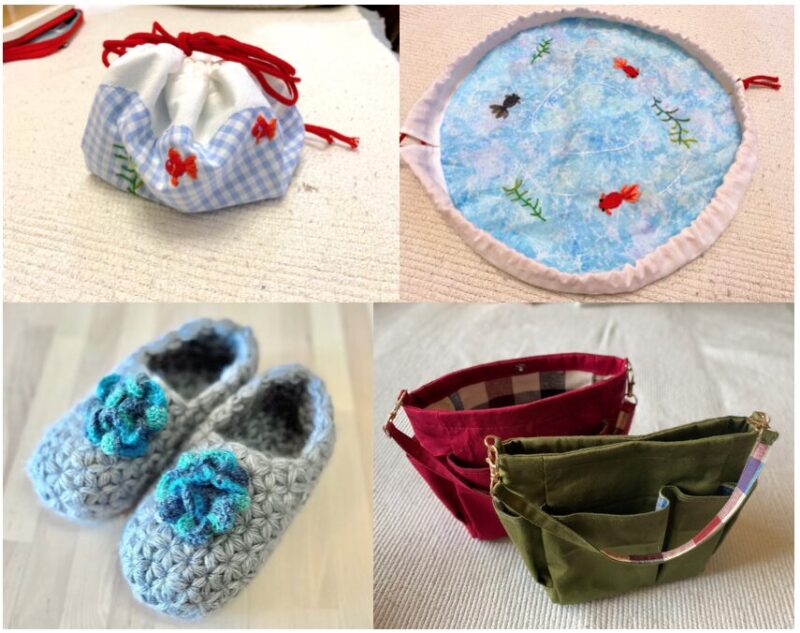 刺繍が施された小物、ちょっと凝った網目模様のルームシューズなどなど