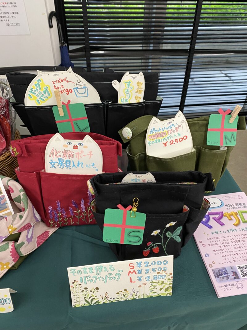 足元ぬくぬくの手編みルームシューズ、刺繍がたくさん施されたアイディア巾着、バックの中でも外でも活躍のバックインバックなどなど、oseccaから生まれた作品が世に出ていきましたぁ〜。